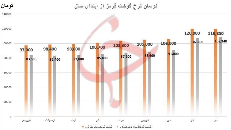 *نمودار تغییر قیمت گوشت از ابتدای سال 99
