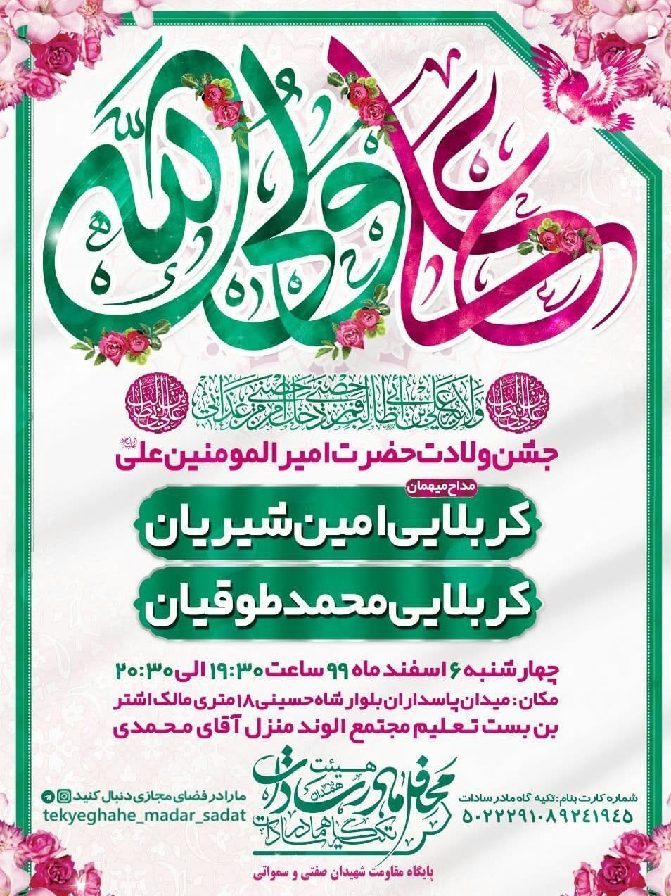 به همین مناسبت خبرگزاری تسنیم، برنامه برخی هیئتهای مذهبی همدان را که در این روزها اقدام به برپایی مراسم جشن و ذکر اهل بیت(ع) میکنند، جهت دسترسی بهتر و سریعتر مخاطبان به تفکیک زمان و نشانی هیئت بر اساس زیر منتشر میکند.