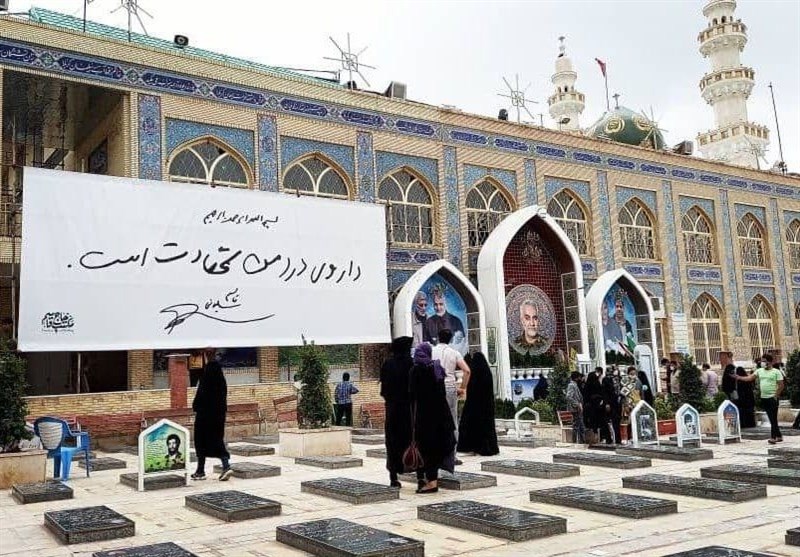 بر دیوارنگاره جدید مزار مطهر حاج قاسم تنها جملهای کوتاه نقش بسته است.
