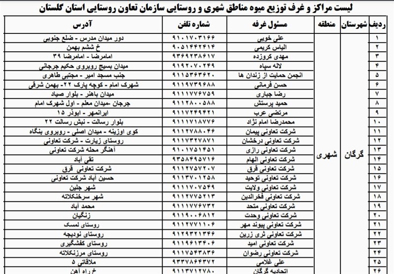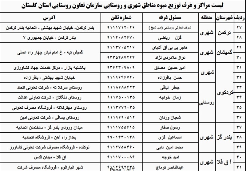با تصمیم کارگروه تنظیم بازار استان گلستان، توزیع میوه شب عید مردم استان در 113 مرکز توزیع سازمان تعاون روستایی استان در حال انجام است.