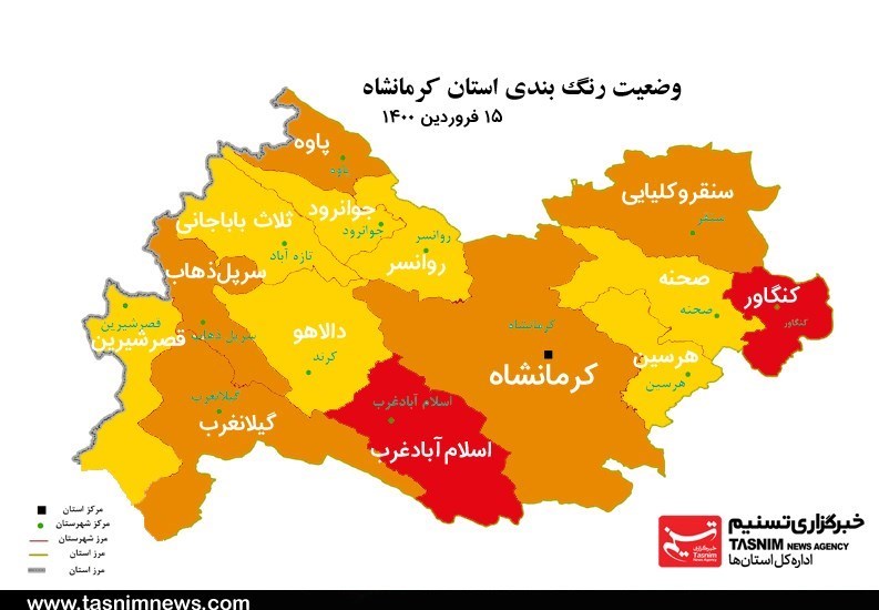 رنگبندی جدید استان کرمانشاه اعلام شد