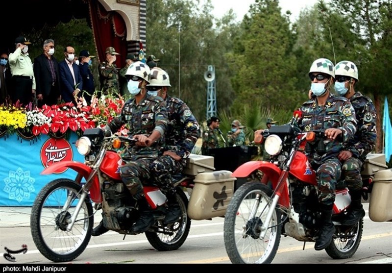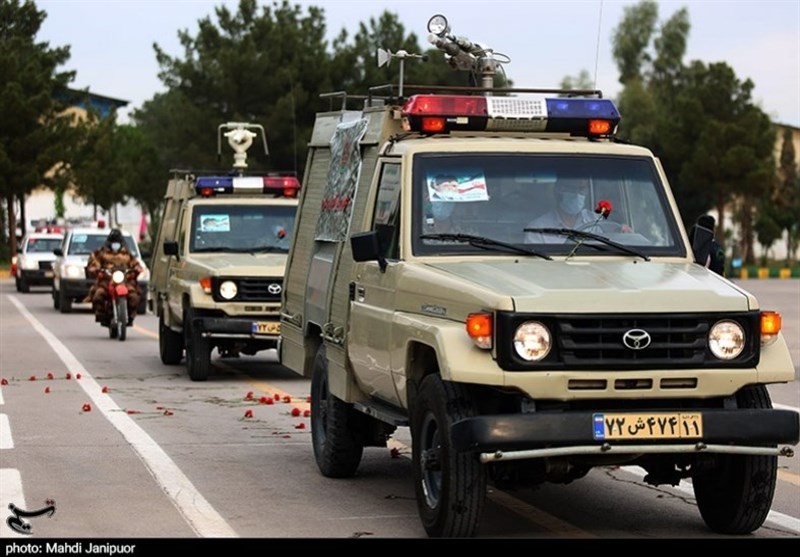 ارتش جمهوری اسلامی در استان بوشهر توان خود را در قالب رژه خودرویی به نمایش گذاشت