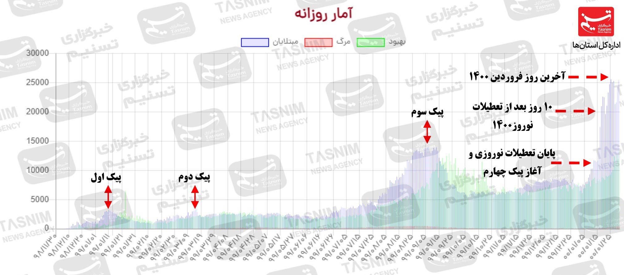 آخرین اخبار کرونا در ایران| ابتلای خانوادگی در استان‌ها نگران‌کننده شده است/ تا رسیدن به قله پیک چهارم فاصله داریم/ سامانه 4030 هم غافلگیر شد+ نقشه و نمودار