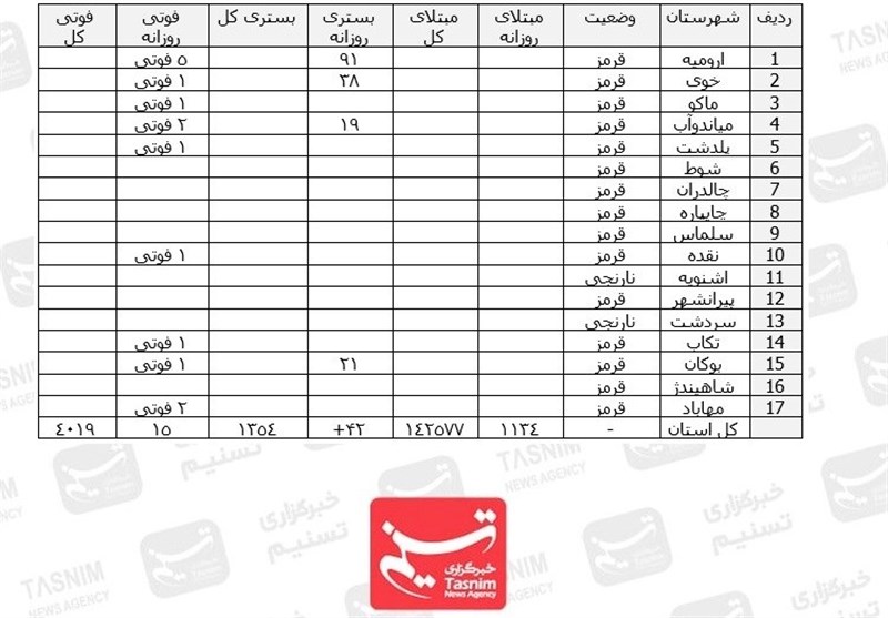 براین اساس شهرستان‌های زرین‌دشت، کوار، بیضا، سپیدان، خرمبید و پاسارگاد با وضعیت نارنجی و دیگر شهرها در وضعیت قرمز قرار دارند، نکته مهم در روزهای اخیر این است که برخی از شهرستان‌ها با رنگی تیره‌تر از قرمز قرار گرفتند که البته ناگفته پیداست که شرایط در استان عادی و کم خطر نیست.
