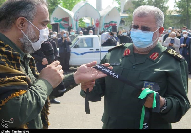 به گزارش خبرگزاری تسنیم از رشت، سردار سرتیپ پاسدار محمد پاکپور فرمانده نیروی زمینی سپاه پاسداران انقلاب اسلامی امروز با حضور در مراسم باشکوه وداع با سردار فاتح نبل و الزهرا در رشت شخصاً پیام تسلیت خود را به خانواده این سردار سرافراز جهان اسلام رساند و سربند "یا حضرت عباس(ع)" را بر پیشانی فرزند ایشان بست.