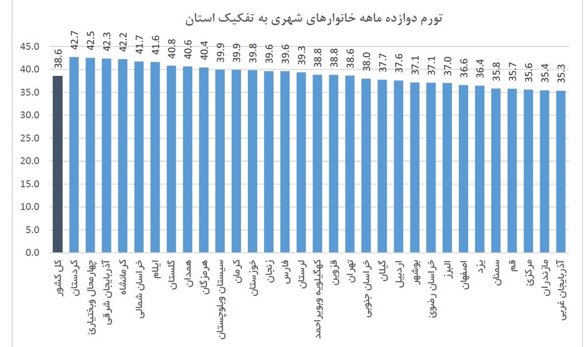 در نرخ تورم دوازده ماهه خانوارهای شهری نیز استان فارس بالاتر از میانگین کشوری قرار دارد. براساس گزارش مرکز آمار نرخ تورم دوازده ماهه خاوارهای شهری در کشور 38.6  بوده که این نرخ در استان فارس 39.6 درصد است.