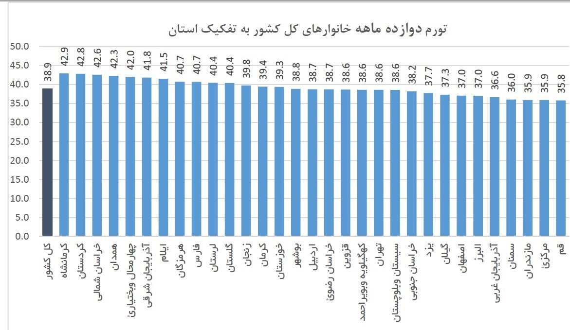 بررسی وضعیت استان فارس به لحاظ  نرخ تورم دوازده ماهه منتهی به فروردین ماه نشان می‌دهد که استان فارس در هر 3 فاکتور خانوارها، خانوارهای روستایی و خانوارهای شهری تورمی بیش از میانگین کشوری را در فروردین ماه امسال تجربه کرده است.