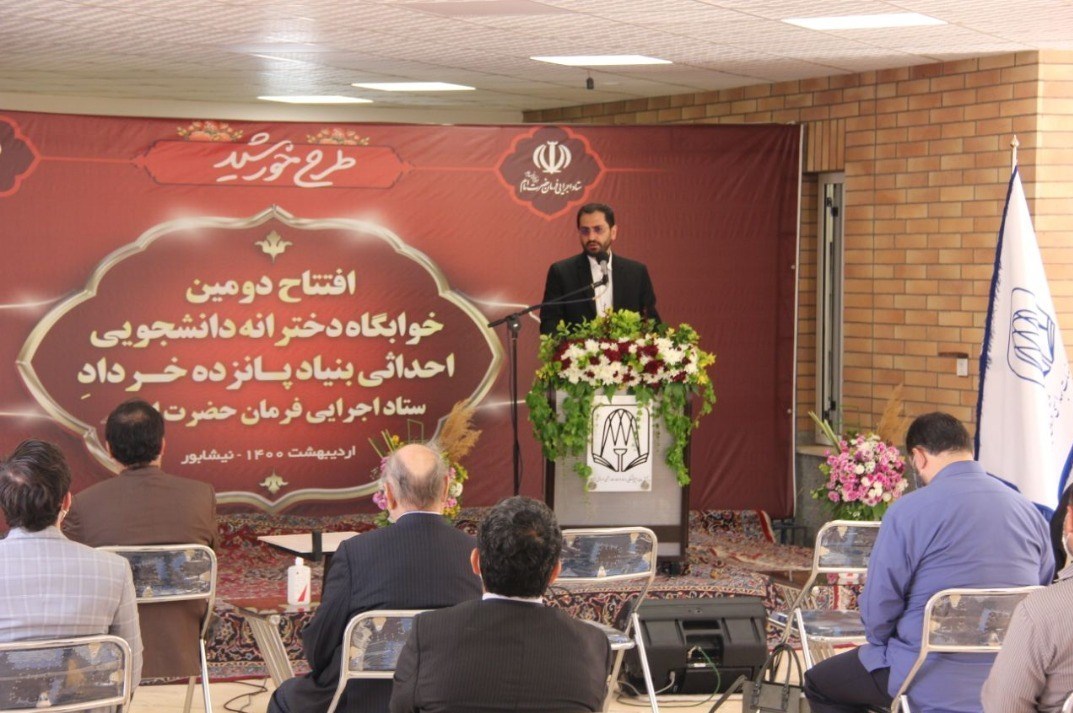 به گزارش خبرگزاری تسنیم از نیشابور، آیین افتتاح دومین خوابگاه دخترانه دانشجویی احداثی توسط بنیاد 15 خرداد ستاد اجرایی فرمان امام خمینی(ره) امروز با حضور معاون وزیر بهداشت، مدیرعامل بنیاد 15خرداد، امام جمعه و نماینده مردم نیشابور در مجلس شورای اسلامی و مسئولان دانشگاه علوم پزشکی نیشابور در محل پردیس این دانشگاه برگزار شد.