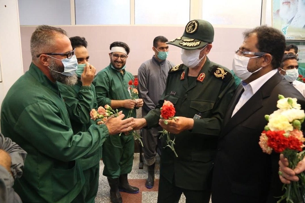 به گزارش گروه اجتماعی خبرگزاری تسنیم؛ همزمان با رونمایی از مستند" لمس مرگ" سردار احمد ذوالقدر فرمانده سپاه حضرت سید الشهدا(ع) استان تهران با حضور در سالنهای تطهیر از کارکنان سازمان بهشت زهرا(س) و عوامل تدفین اموات کرونایی سازمان بهشت زهرا(س) که 15 ماه است در خط مقدم خدماترسانی در بحران کرونا قرار دارند، تجلیل کرد.