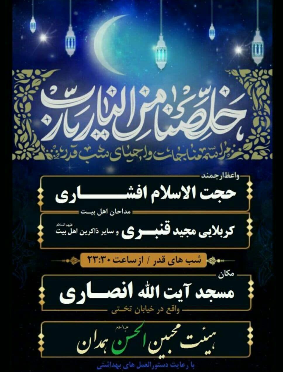 به گزارش خبرگزاری تسنیم از همدان، همزمان با فرا رسیدن شبهای قدر حسینیهها، تکایا، مساجد و هیئتهای مذهبی همدان مجالس ذکر، دعا و مناجاتخوانی را برپا کردند. به همین مناسبت خبرگزاری تسنیم برای دسترسی روزهداران به این محافل، اسامی آنها را منتشر کرده است.