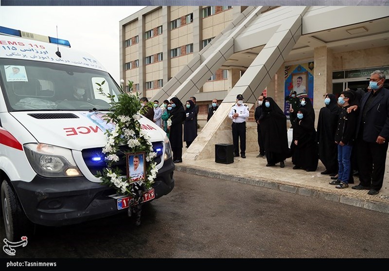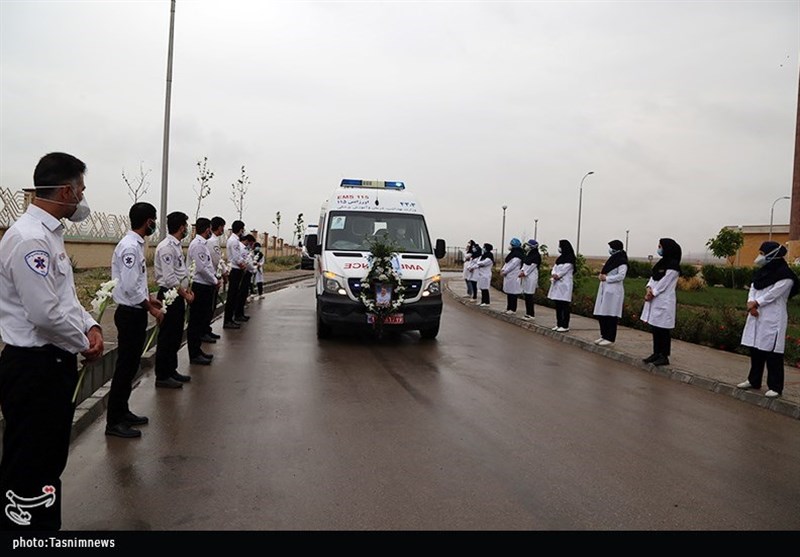 گروه استان‌ها- مراسم تشیع و بدرقه پیکر شهید مدافع سلامت شهید رستمی توسط کادر درمان برگزار شد.