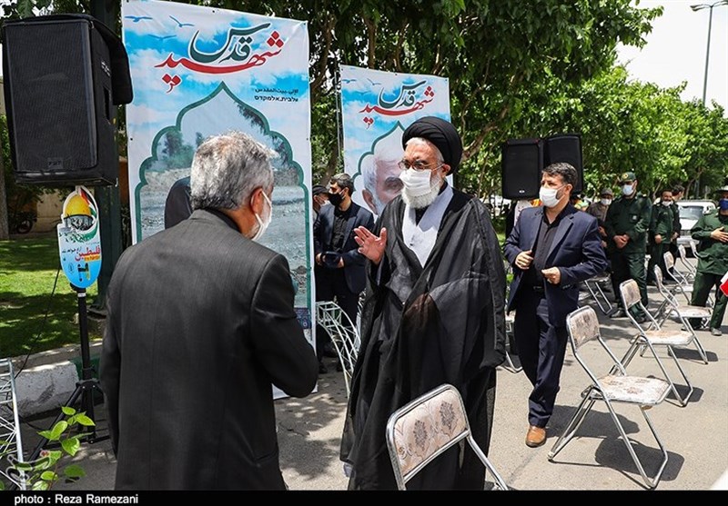 اهتزار پرچم فلسطین در قم/ آیت‌الله سعیدی:مراسم‌های روز قدس نمادین نیست