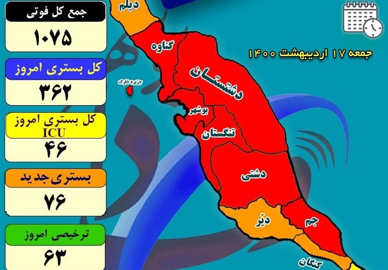 استان بوشهر در پیک چهارم کرونا صدمه و خسارت فراوانی دید به گونهای که در 42 روز گذشته افزون بر 184 نفر فوت کردهاند.