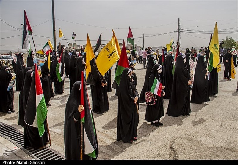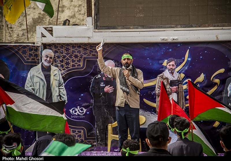 تجمع دانشجویان قمی در روز قدس/از آتش زدن پرچم اسرائیل تا اهتزاز پرچم 300 متری فلسطین از قاب دوربین