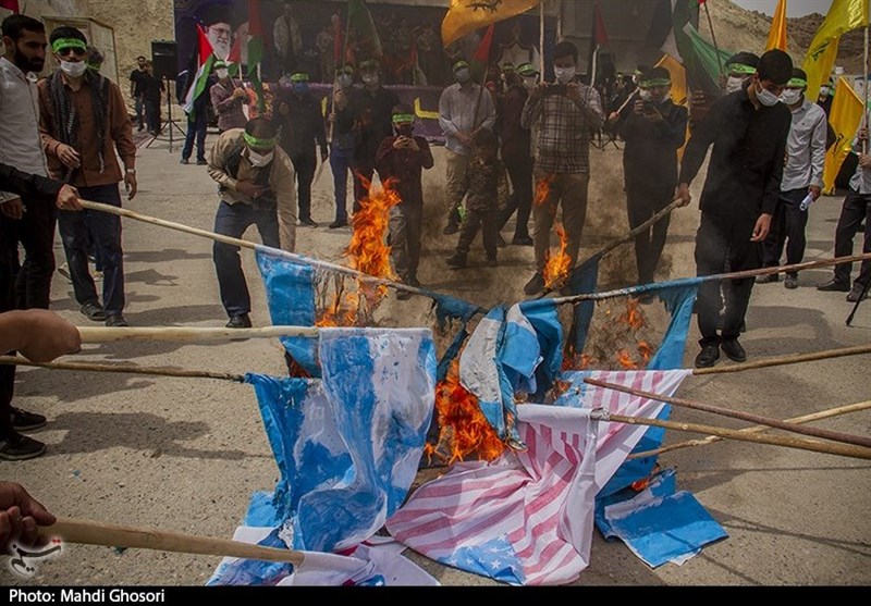 مراسم نمادین خودجوش روز قدس در میدان امیرچقماق؛ مردم یزد پرچم رژیم جنایتکار صهیونیستی را به آتش کشیدند