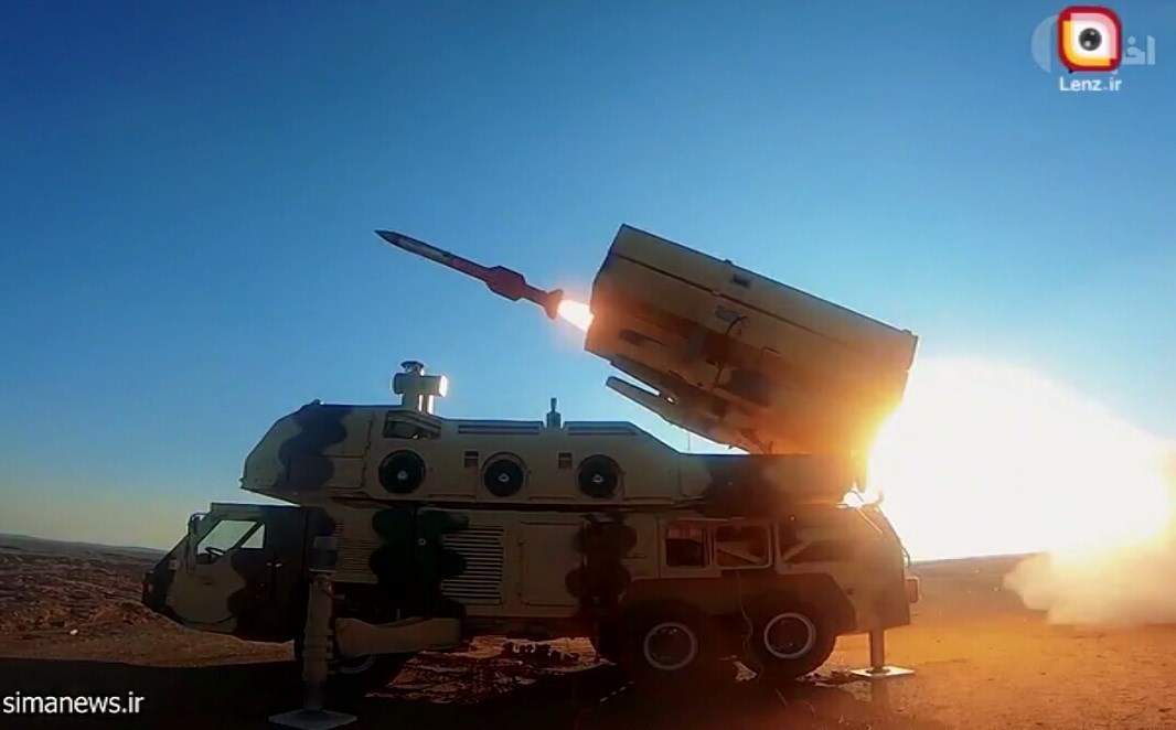 شلیک موشک 9 دی از سامانه 9 دی؛ ردیاب الکترواپتیک در تصویر، پشت رادار مشخص است