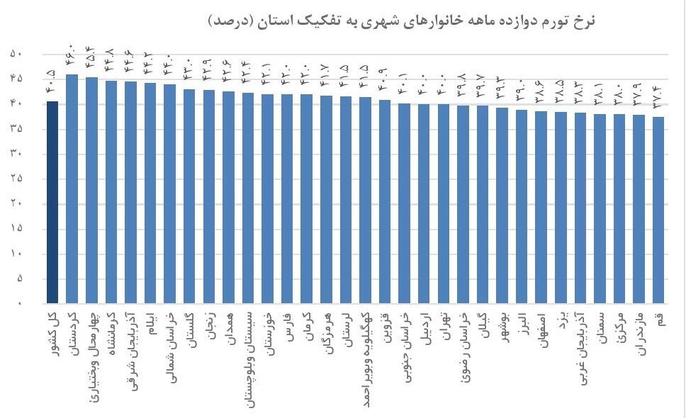 بررسی وضعیت استان فارس به لحاظ نرخ تورم دوازده ماهه منتهی به اردیبهشت ماه نشان میدهد که استان فارس در هر 3 فاکتور خانوارها، خانوارهای روستایی و خانوارهای شهری تورمی بیش از میانگین کشوری را در اردیبهشت ماه امسال تجربه کرده است.