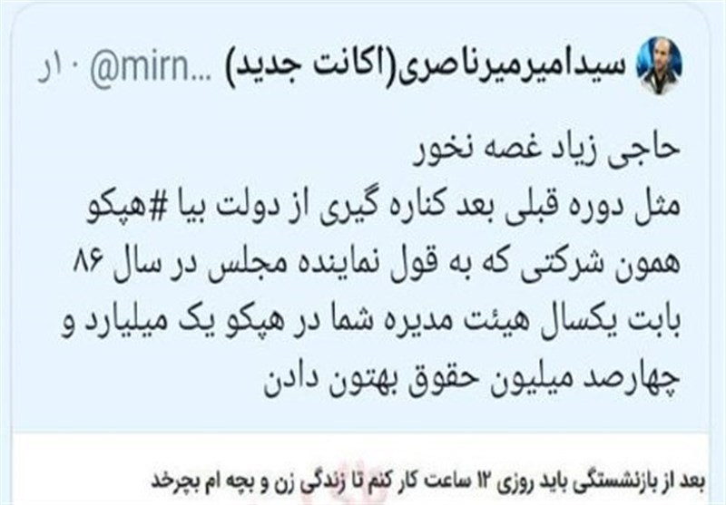 بااین‌حال موضوع هنوز از یاد کارگران هپکو نرفته بود تا آنجا که "میرناصری" کارگر هپکو در توئیتر در واکنش به صحبت زنگنه که گفته بود "در دولت بعدی اگر پیشنهاد ریاست‌جمهوری هم به بنده داده شود، قبول نمی‌کنم چه برسه به وزارت نفت. در دولت بعدی بنده از فعالیت‌های دولتی بازنشسته خواهم شد. بعد از بازنشستگی باید روزی 12 ساعت کار کنم تا زندگی زن و بچه‌ام بچرخد."، به موضوع حقوق و حضور وی در هیئت مدیره هپکو به‌کنایه اشاره کرده بود.