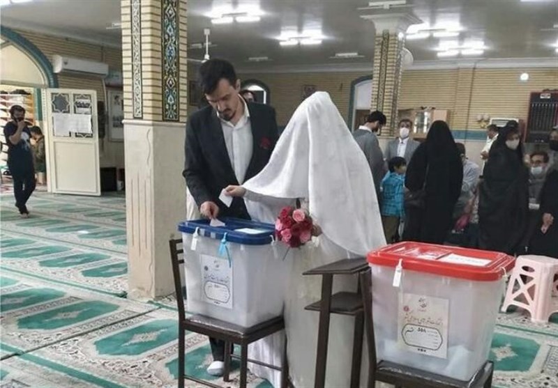 در شعبه اخذ رای مستقر در حرم مطهر کریمه اهلبیت سلاماللهعلیه عروس و دامادی بعد از اتمام مراسم عقد خود در اتاق عقد ویژه حرم در این شعبه حضور و رای خود را به صندوق میاندازند، داماد در گفتوگو با ما بیان میکند: امروز عقد و پیمان زندگی ما بود که همزمان با انتخابات بود لذا تصمیم گرفتیم بعد از مراسم عقد در انتخابات هم شرکت کنیم نگاه کنید مردم چگونه حضور یافتند مردم دین خود را بهنظام ادا کردند حال نوبت مسئولان ما است تا کمر همت بسته و نسبت به شعارهای خود در عمل همت کنند و تغییراتی در زندگی مردم ایجاد کنند.