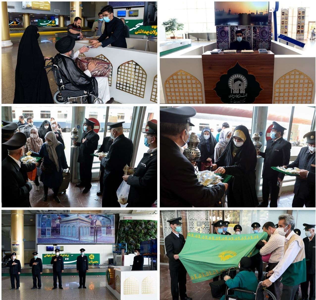 خادمان بارگاه منور رضوی این روزها در مبادی ورودی مشهد مقدس حاضر شدهاند و به زائرانی که به مشهد مشرف میشوند خوشامد میگویند.