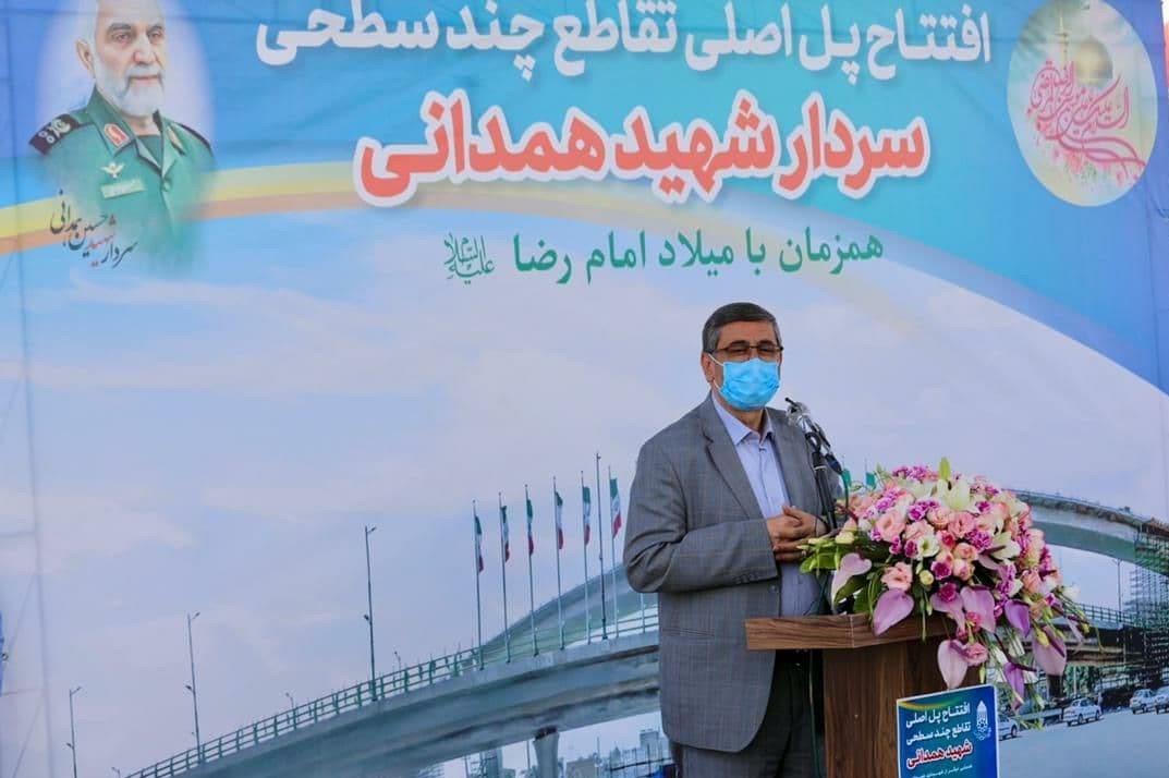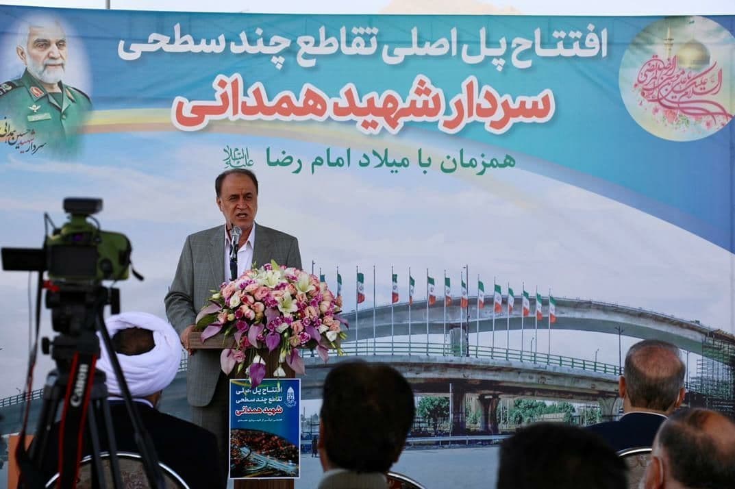 به گزارش خبرگزاری تسنیم از همدان ، پروژه پل اصلی تقاطع چند سطحی سردار شهید همدانی همزمان با میلاد امام رضا(ع) به طور رسمی افتتاح شد. در این مراسم شاهرخی استاندار، آیتالله شعبانی نماینده ولی فقیه در استان، حاجی بابایی نماینده مردم همدان و رئیس کمیسیون برنامه و بودجه مجلس شورای اسلامی، محمدی فرماندار همدان، صوفی شهردار همدان و جمعی از مدیران و مسئولان دستگاههای اجرایی و خدماترسان استانی و شهرستانی نیز حضور داشتند.
