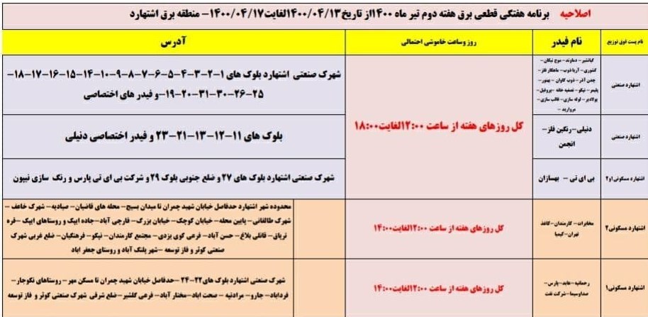 آیا در شهرکهای صنعتی دیگر نیز قطعی برق با این میزان ساعات اعمال میشود؟