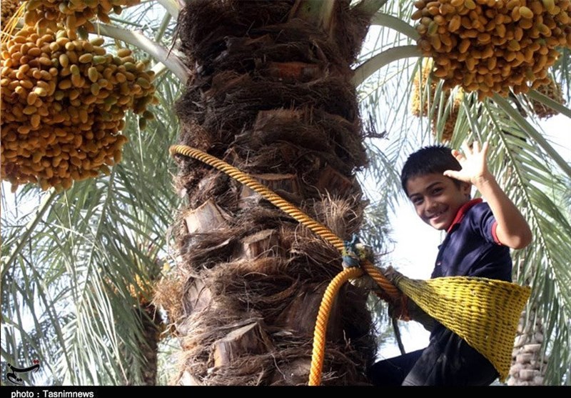 گروه استان‌ها- همزمان با مردادماه در اوج فصل گرما تابستان، برداشت محصول اولیه نخل شامل رطب و خارک در استان بوشهر آغاز شده که مشارکت کودکان در برداشت این محصول از نخل‌های با ارتفاع 15 متر دیدنی است.