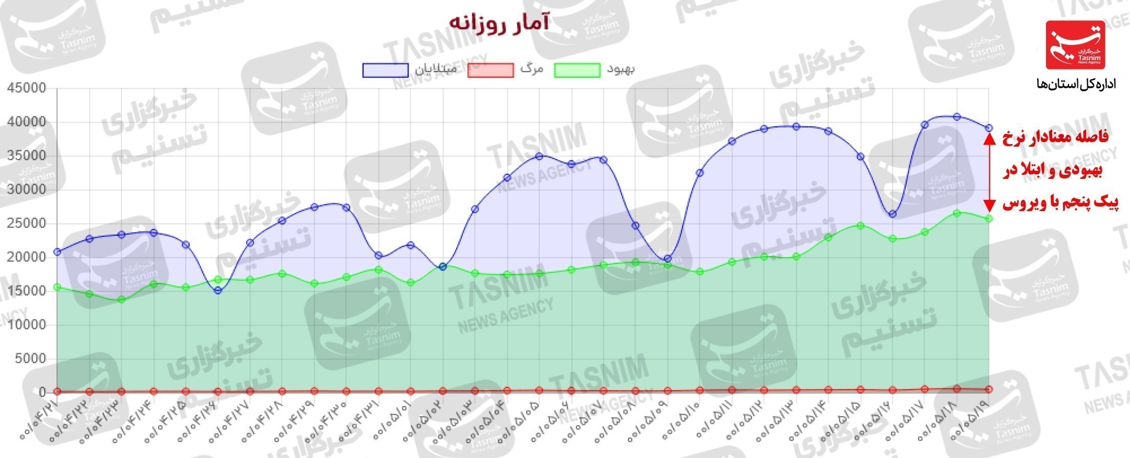 در شبانهروز اخیر با جهش مجدد آمار ابتلای کرونایی میزان مبتلایان به 84 هزار و 336 نفر رسید که 31 هزار و 209 نفر از این مبتلایان هم تاکنون بستری شدند و 1955 نفر به دلیل شدت بیماری فوت کردهاند. در ضمن موارد محتمل و مشکوک ابتلا به کرونا هم با 50 نفر افزایش به 16 هزار و 208 نفر رسید و میزان بستریهای موقت هم با 41 نفر افزایش به 1239 نفر رسید.