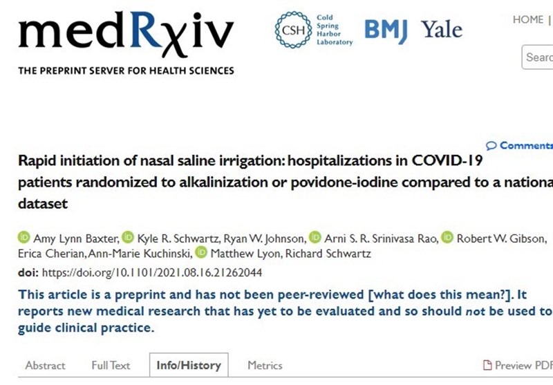 پزشکان در آزمایشهای خود متوجه کاهش 18.8برابری بستری شدن بیماران در بیمارستان بر اثر شستوشوی بینی و حلق در 24 ساعت نخست مثبت شدن تست PCR شدند.