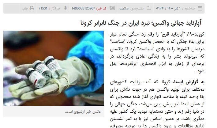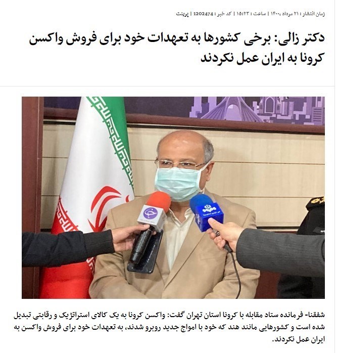 بهعبارت دیگر، از همان نخستین اقدامات بینالمللی جهت تأمین واکسن علیه ویروس کووید19، دولت جمهوری اسلامی ایران برای تأمین واکسن اقدام کرد و طبق معمول، هزینههای آن را هم (حتی بنا بر گزارشها، بیش از آنچه پای دیگر کشورها حساب میشد) پرداخت کرد، اما باز با بیتعهدی و عدم پایبندی سازوکارهای ظاهراً بینالمللی نسبت به خود مواجه شد.