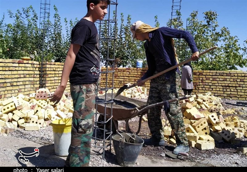 پیرزن با شوق فراوان برای بچههای گروه صحبت میکند و در حالی که اشکهایش را با گوشه روسری چهار طاقی که برسر دارد پاک میکند میگوید شما را خدا برای من رساند، نمیدانم چکار کنم، نمیتواند تاب بیاورد و دست به کار میشود، با همان کمر خمیده و دستهایی که نشان از کار و زحمت است ماسه میآورد، آجرها را جابه جا میکند و برای بچههای گروه روی آتش چای درست میکند.