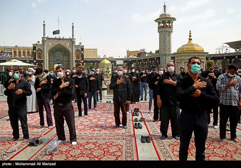 بیرقهای سیاه عزا بر گنبد نورانی حرم حضرت معصومه(س) خیابانها و میدانها افراشته شده و مراسمات ویژه عزاداری با رعایت پروتکلهای بهداشتی و فاصلهگذاری اجتماعی و بهصورت کنترلشده در این مکان مقدس با حضور وعاظ و مدیحهسرایان در حال برگزاری است.