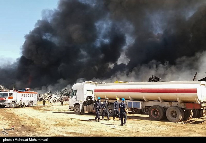 آتشسوزی کنترل شده و چون آتشسوزی وسیع بود هنوز مهار حریق انجام نشده است.