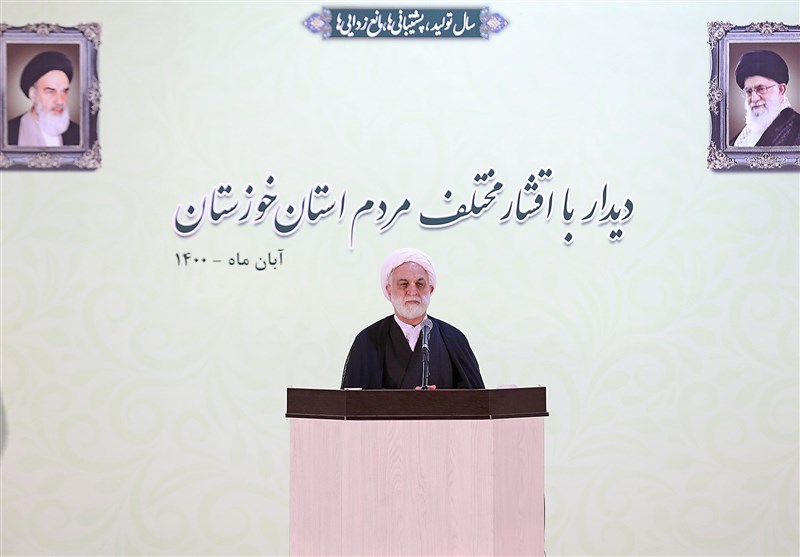 در این جلسه همچنین، پیش از سخنان رئیس قوه قضائیه، حجتالاسلام «سید عبدالنبی موسویفرد» امام جمعه اهواز اجرای عدالت را از اهداف نظام اسلامی دانست و گفت: درست است که در زمینه اجرای عدالت به نتیجه مطلوب نرسیدهایم اما باید اذعان کنیم که گامهای قابل توجهی در این زمینه برداشته شده است.
