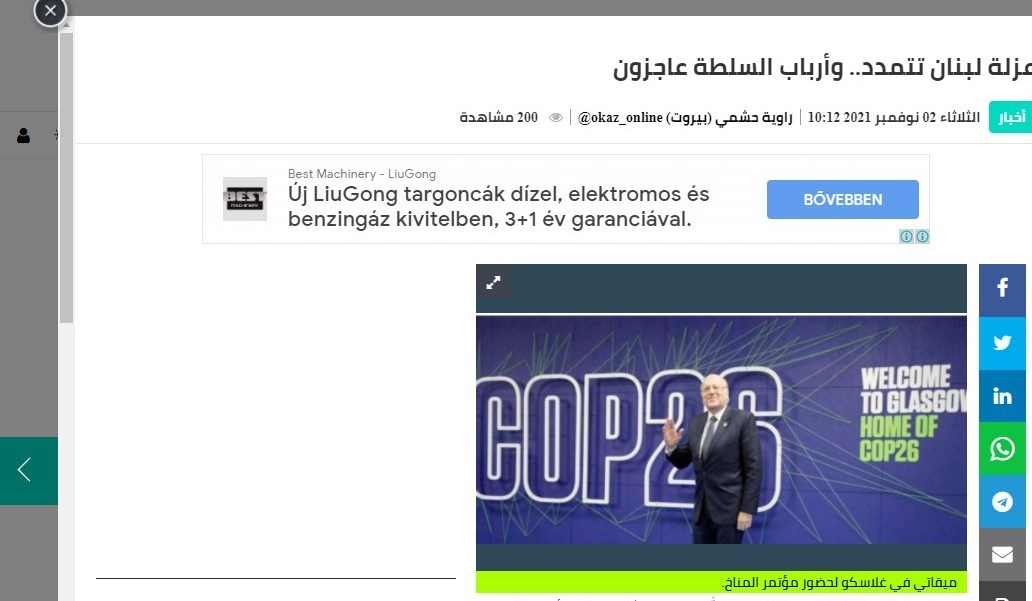 این رسانه ادعای رسانههای سعودی مبنی بر قاچاق مواد مخدر از سوی حزب الله را تکرار کرده و در اقدامی کاملا مداخلهجویانه از دولت میقاتی خواسته است تا روابط لبنان را با ایران قطع کند. این رسانه مدعی شده است که به سبب وجود حزب الله، دولت لبنان بر این کشور حاکمیت ندارد.