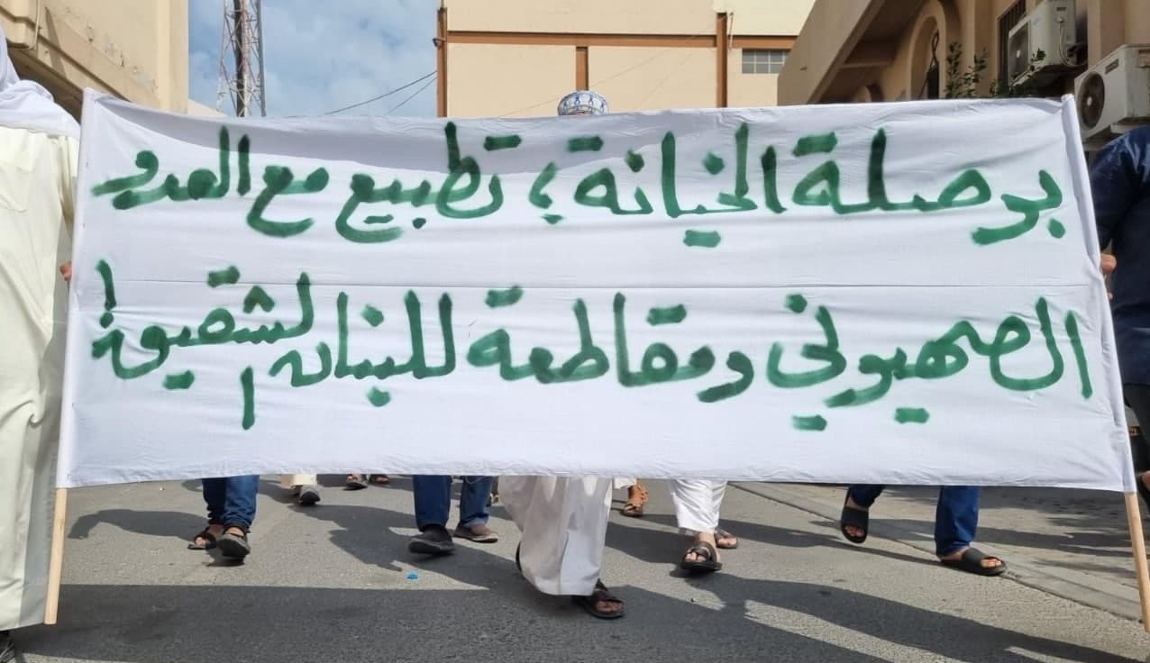 به گزارش گروه بین الملل خبرگزاری تسنیم، شهروندان بحرینی با وجود فضای سنگین سرکوبگری و خفقان تحمیل شده از سوی آل خلیفه بار  دیگر با ریختن به خیابان‌ها حمایت خود از ملت یمن را مورد تاکید قرار داده و خواستار توقف فوری تجاوزات ائتلاف سعودی اماراتی شدند.