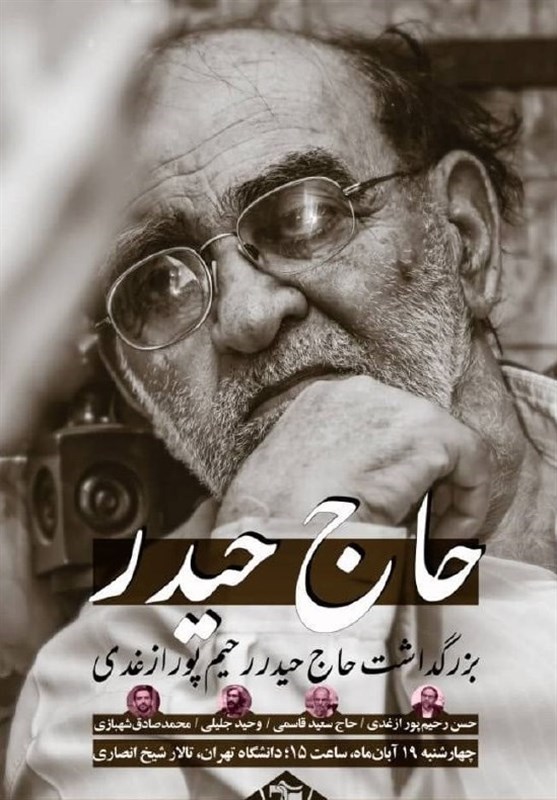 به گزارش خبرنگار گروه دانشگاه خبرگزاری تسنیم، مراسم بزرگداشت حاجحیدر رحیمپور ازغدی با حضور حسن رحیمپور ازغدی، حاج سعید قاسمی، وحید جلیلی و محمدصادق شهبازی در دانشگاه تهران برگزار می شود.