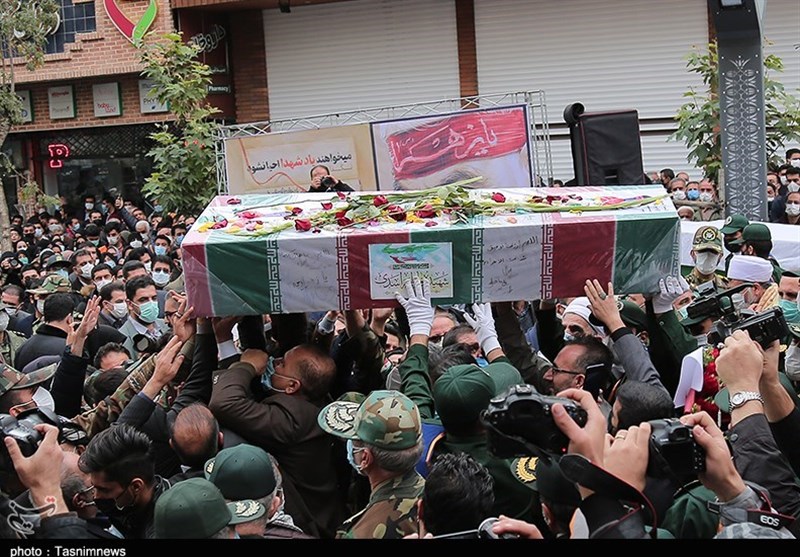 این پیکر بیجان خفته در تابوت آراسته به پرچم پاک ایران حرفهای زیادی با خود دارد انگار همه را مبهوت خود کرده است.
