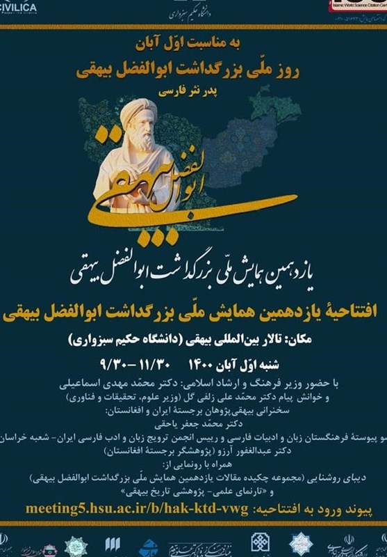 به گزارش خبرنگار فرهنگی خبرگزاری تسنیم، یازدهمین همایش ملی بزرگداشت ابوالفضل بیهقی که در دو محور علمی- پژوهشی و بخش عمومی، به مدت یک ماه و در قالب "ماه بیهقی" برگزار شد، روز چهارشنبه (3 آذرماه 1400) به کار خود پایان داد.