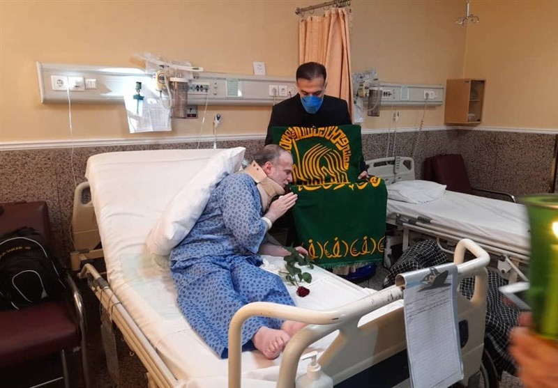 خادمان حرم مطهر رضوی(ع) با حضور در بیمارستان از این جانباز دفاع مقدس عیادت کردند. این دیدار با ذکر مدح اهل بیت عصمت و طهارت همزمان با سالروز میلاد حضرت زینب(س) و یاد زیارت حضرت علی بن موسی الرضا علیهم السلام همراه بود.