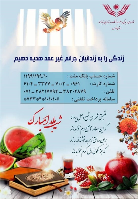 مدیرکل زندانهای استان فارس ادامه داد: سهم هر نفر مبلغ 10 هزار تومان برای رهایی زندانیان در نظر گرفته شده است که نیکوکاران میتوانند کمکهای نقدی خود را به حسابهای نمایندگی ستاد دیه استان فارس به شماره حساب بانک ملت 11991199/10 و شماره کارت 6104337770030961، سامانه پرداختی تلفنی * 733 * 4* 101010 # یا به شماره تلفن 07138217794_38302879 واریز کنند.
