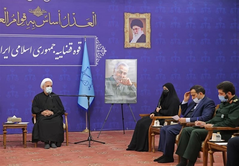 پیش از سخنان رئیس دستگاه قضا، زینب سلیمانی، فرزند شهید سلیمانی طی سخنانی ضمن قدردانی از اقدامات ستاد حقوق بشر قوه قضائیه برای رسیدگی به پرونده ترور شهید سلیمانی و همراهانش اظهار کرد: در کنار تمام فعالیت‌های فرهنگی و رسانه‌ای که برای شهید سلیمانی در حال انجام است، نباید از حوزه پیگیری کیفری پرونده ترور این شهید بزرگوار غافل ماند.