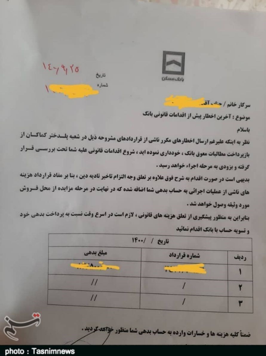 یکی از بانکهای پلدختر بعد از دستور رئیس جمهور مبنی بر امهال وامها طی روزهای گذشته اقدام به پخش اخطاریهای تهدید آمیز با عنوان آخرین اخطار پیش از اقدامات قانونی بانک خطاب به سیلزدگانی که اقساط معوق دارند، کرده است.