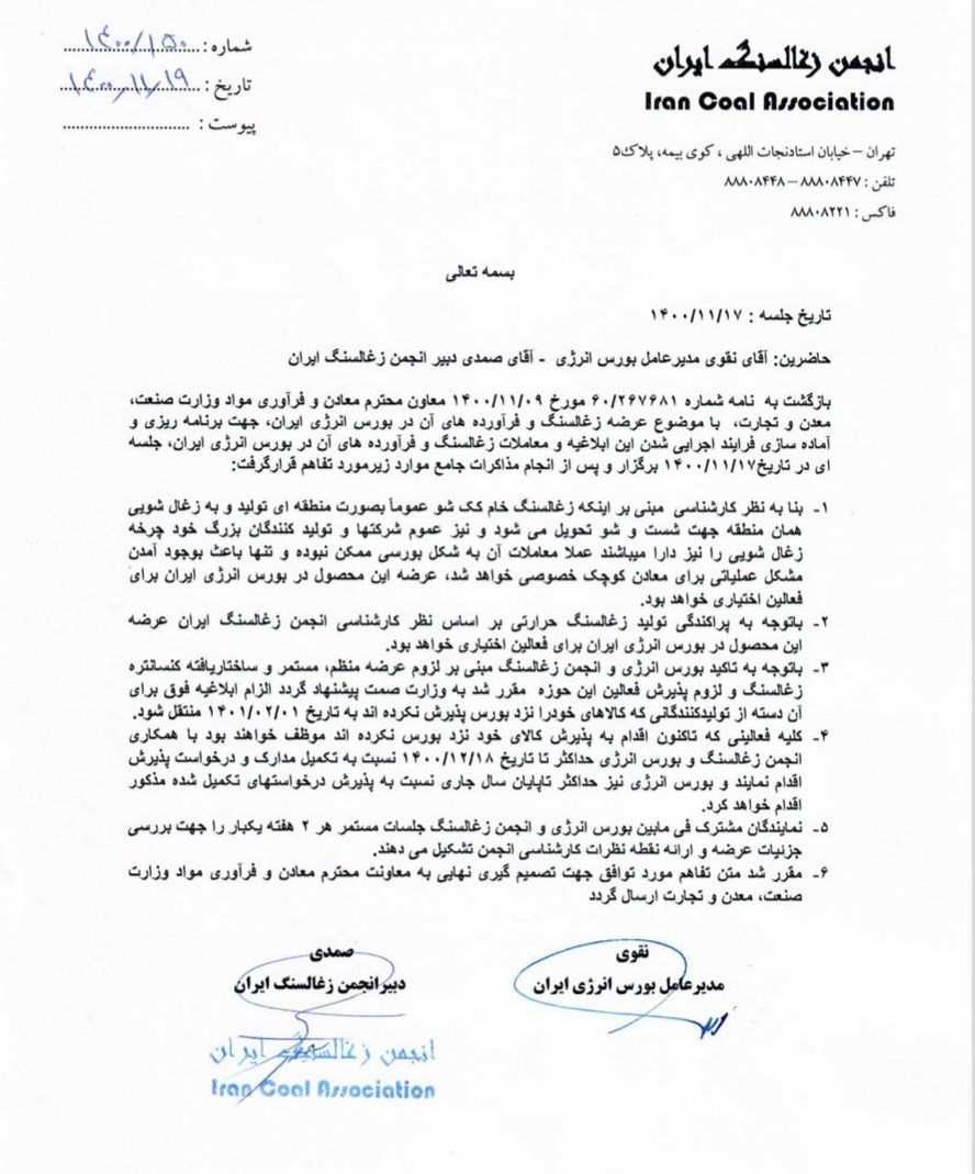 رفع ابهامات معاملات زغالسنگ در بورس انرژی ایران + سند
