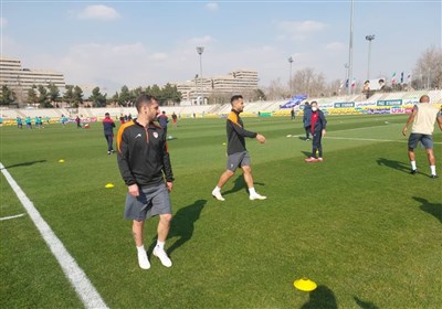 * بازیکنان دو تیم در فاصله یک ساعت تا آغاز بازی وارد زمین شدند و شروع به گرم کردن بدنهای خود کردند.
