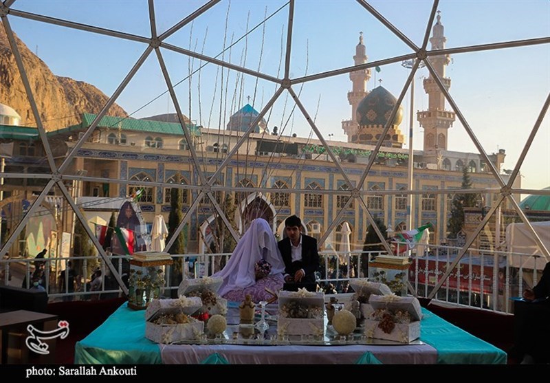 مراسم عقد ساده زوج جوان کرمانی از جوار مرقد مطهر حاج قاسم به روایت تصویر