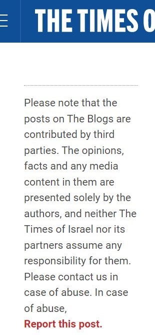 پاسخ منفی است؛ علیرغم اینکه مطلب کاترین پرز شکدم حاوی ادعاهایی علیه جامعه و موضوع هستهای ایران است، امّا حتی بخش رسمی سایت صهیونیستی هم آن را منتشر نکرده است. 3 مطلب کاترین شکدم در بخش بلاگهای تایمز اسرائیل منتشر شده است. خود این سایت در توضیح مطالب بخش بلاگش مینویسد؛ "توجه داشته باشید که مطالب منتشره در بخش بلاگها توسط طرف سوم نوشته میشود. نظرات، فکتها و محتواهای ویدیویی مندرج در آنها منحصراً توسط نویسندگان این بلاگها ارائه شدهاند و نه تایمز اسرائیل و نه شرکای این سایت هیچ مسئولیتی در قبال آنها ندارند، در صورتی که با سوءاستفاده در این بخش مواجه شدید، با ما تماس بگیرید"!
