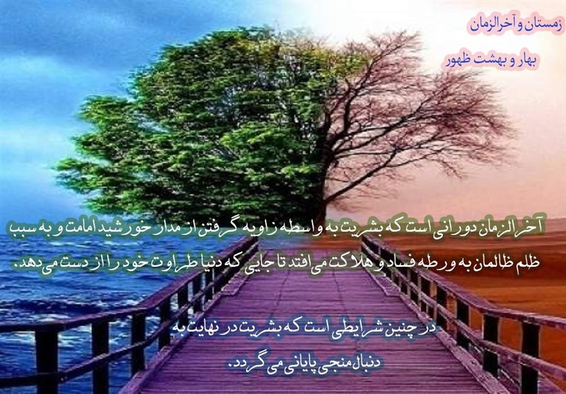 اما خداوند علاوه بر درس صفاتی و رفتاری، چه درسهای دیگری از زمستان و بهار برای بشریت قرار داد و این دو فصل در بستر دنیا را نشان از چه موضوعی قرار داد؟ پاسخ آن، سرزمین ظهور است، همان سرزمینی که خداوند بناست به وسیله امام عصر عجل الله تعالی فرجه در پهنه آسمانها و زمین برپا کند. با این تعریف آیا میتوان گفت زمستان نشان از رویدادهای سخت آخرالزمانی دارد؟ همان دورانی که بشریت به واسطه زاویه گرفته از مدار خورشید امامت و ولایت و همچنین به سبب ظلم ظالمان و اعمال فاجران و مستکبران، به ورطه فساد و هلاکت میافتد تا جایی که دنیا طراوت خود را از دست میدهد و به موت حقیقی میرسد. در شرایط آخرالزمان، عمده انسانها از فطرت خداجوی خود دور میشوند و استعدادِ رشدشان به حداقل ممکن میرسد؛ انسانِ دورانِ آخرالزمان در حد حیوانات و به تعبیر قرآن، بلکه پستتر تنزل مییابد. در چنین شرایطی است که بشریت در نهایت به دنبال منجی پایانی میگردد و مصرّانه از خداوند میخواهد منجی موعود را به ظهور برساند.