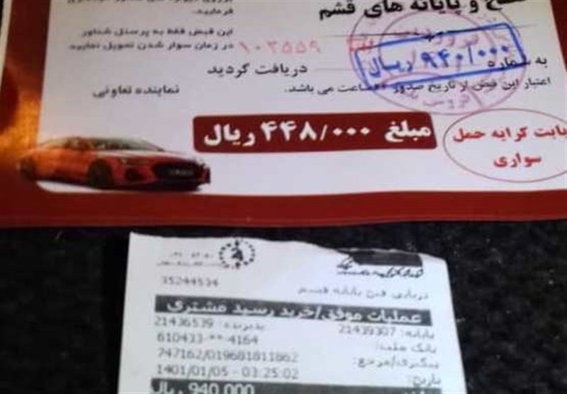 یک نمونه از فیشهای صادره و رسید دریافت پول از یکی از ساکنان قشم در اسکله