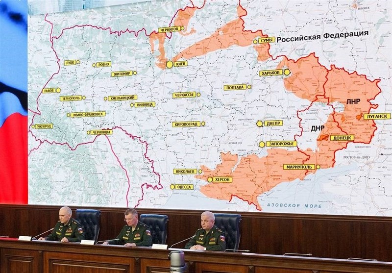 به گزارش گروه بین الملل خبرگزاری تسنیم، مقامات بلندپایه وزارت دفاع روسیه عصر روز جمعه در نشستی مطبوعاتی اعلام کردند: «عملیات نظامی روسیه در خاک اوکراین طبق برنامه در حال پیشرفت است و وظایف اصلی مرحله نخست آن در مجموع محقق شده است.»